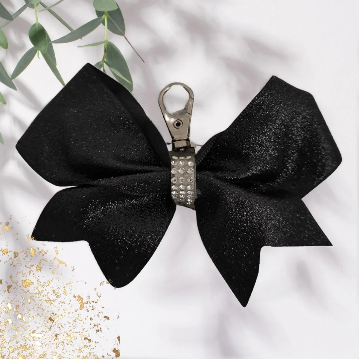 Tyylikäs musta rusettiavaimenperä tuo ripauksen persoonallisuutta avaimiin, laukkuun tai reppuun. Rusetin keskiosaa koristavat kimaltelevat strassit, jotka tuovat siihen juhlavuutta ja näyttävyyttä.